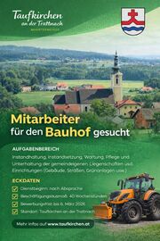 Die Marktgemeinde Taufkirchen an der Trattnach sucht für den Bauhof einen ...mehr lesen >>